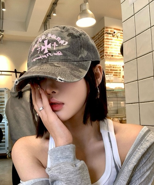 迷彩柄 赤刺繍 キャップ beautiful 全2色刺しゅう入り迷彩柄キャップ | mblueshop